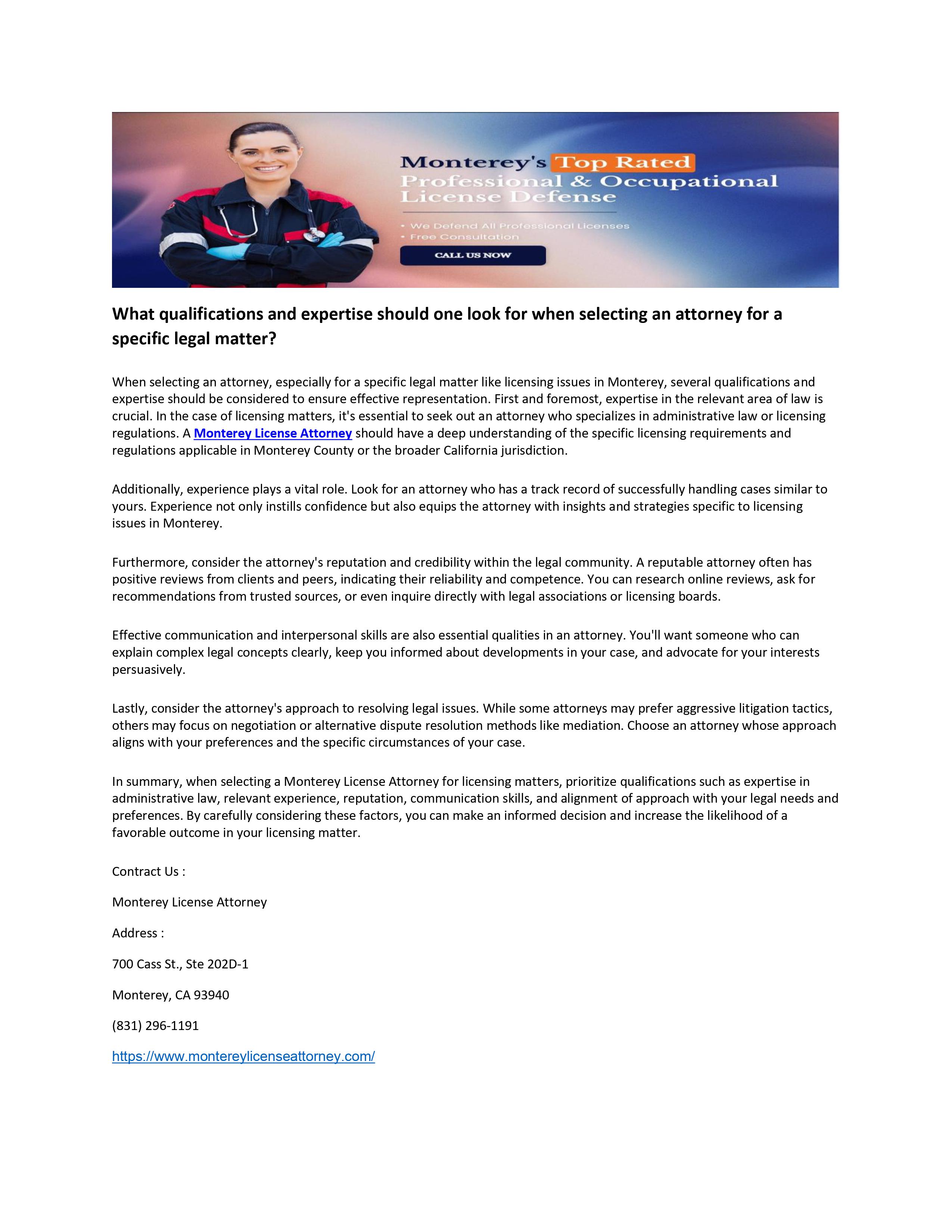 Monterey License Attorney